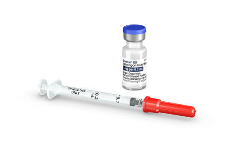 Units per package size: Gvoke Kit contains one (1) single-dose sterile syringe with markings for 0.1 mL (0.5 mg pediatric dose) and 0.2 mL (1 mg adult dose), and one single-dose vial containing 0.2 mL of solution.