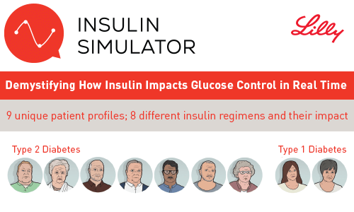 The Insulin Simulator from Lilly is an interactive tool that lets health care professionals (HCPs) create and evaluate insulin regimens for hypothetical patients with varied characteristics. The simulator is designed to help HCPs understand the impact of different insulin doses on blood glucose values. Supported by Lilly.