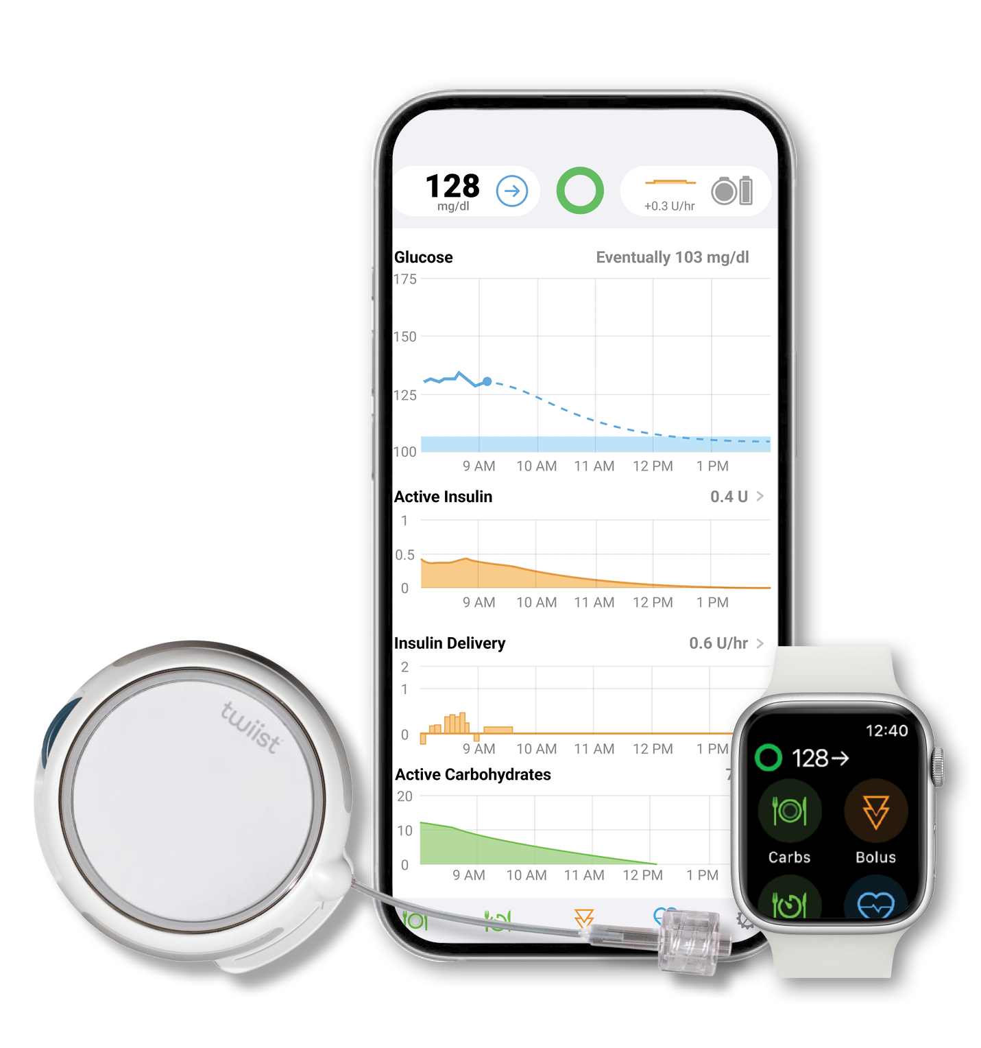 The twiist™ AID System is designed for individuals with type 1 diabetes ages 6 and older. It automates insulin delivery based on real-time continuous glucose monitoring (CGM) data, predicted glucose trends, and user-defined parameters. The system is intended to support flexible, personalized therapy with simplified settings designed to accommodate a range of individual lifestyles and multiple wear options for added discretion and comfort. The twiist AID System allows for full iPhone control and supports bolus delivery from Apple Watch.